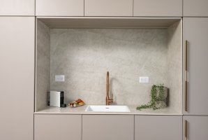 האבזור הקיים במטבח של סוויטת אלפא בוטיק: קומקום חשמלי, מכונת אספרסו / קפה, כיריים, מיקרוגל, מקרר.
