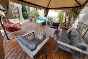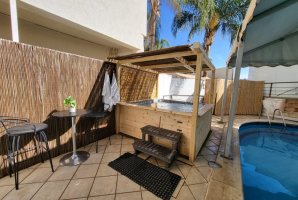 המתחם מצויד בבריכת שחייה פרטית מחוממת ומגודרת, להנאה כל השנה, יחד עם ג'קוזי ספא מפנק. תוכלו לשחק פינג פונג, ליהנות מכדורגל שולחן או פשוט להירגע עם כוס קפה בעמדת המנגל BBQ. מטבח מאובזר עם מכונת אספרסו ותמי 4 עומד לרשות האורחים.
