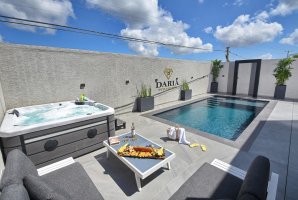 תיהנו מבריכת שחייה פרטית ומחוממת, וג'קוזי ספא הממוקם בלב הגן המטופח. ריהוט גן חיצוני, פינות ישיבה נוחות ומיטות שיזוף יאפשרו לכם להירגע וליהנות מהנוף הפסטורלי. בנוסף, עמדת מנגל BBQ עומדת לרשותכם להכנת ארוחות טעימות באוויר הפתוח.