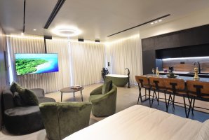 הסוויטה כוללת מסך LCD עם חיבור ל-HOT ו-Netflix, שולחן אוכל ופינת ישיבה מרווחת. במטבח תמצאו את כל הדרוש להכנת ארוחות - מקרר, כיריים, מיקרוגל וקומקום חשמלי.