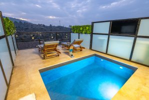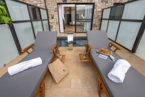 במתחם החיצוני תוכלו למצוא בריכת שחייה פרטית ומחוממת, לצד פינות ישיבה מזמינות וריהוט גן חיצוני. לאלו המחפשים חוויות נוספות, האזור מציע טיולי טרקטורונים, סוסים, אופניים וג'יפים, כמו גם מסלולי הליכה בטבע. ניתן להזמין ארוחות שף, חצי פנסיון או ארוחות כשרות בתיאום מראש, והאירוח כולל בקבוק יין חינם.