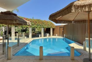 הסוויטה מעוצבת בהקפדה על הפרטים הקטנים כדי להעניק לכם תחושת רוגע ושלווה. היא מצוידת בבריכת שחייה פרטית ומחוממת, ריהוט גן חיצוני מושקע, ופינות ישיבה נוחות. בנוסף, תוכלו ליהנות ממסך LCD, שולחן אוכל מרווח ופינת ישיבה פנימית.
