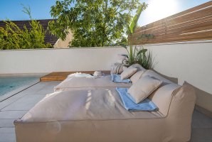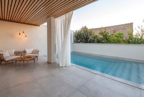 לרשות האורחים עומדת בריכת שחייה פרטית ומתחם חיצוני מפואר הכולל פינות ישיבה, ריהוט גן חיצוני ושולחן גינה. למי שאוהב לבשל, המטבח החיצוני המאובזר כולל עמדת מנגל BBQ (לא בשבת).