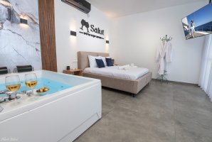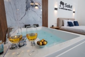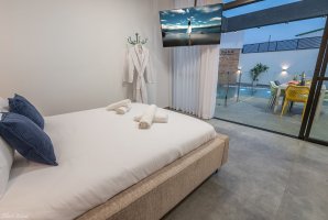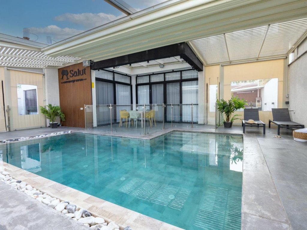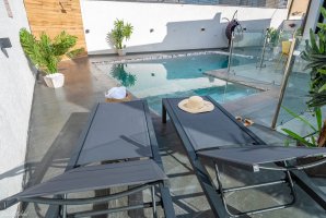 הסוויטה כוללת בריכת שחייה פרטית ומגודרת, שמחוממת ומקורה, כך שתוכלו ליהנות מהמים בכל מזג אוויר. מסביב לבריכה תוכלו למצוא פינות ישיבה נוחות, מיטות שיזוף וריהוט גן חיצוני להשלמת חווית החוץ המרגיעה.