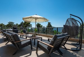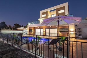 בחוץ תמצאו בריכת שחייה מחוממת ומגודרת, לצד עמדת מנגל BBQ, מיטות שיזוף ופינות ישיבה מרווחות. הפינות הירוקות כוללות גם שולחן גינה, ערסל ופינג פונג להנאה מושלמת תחת השמש.