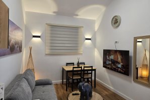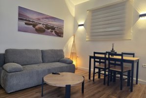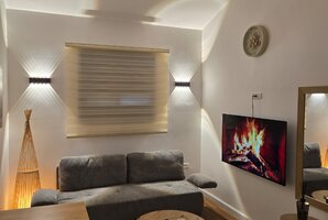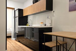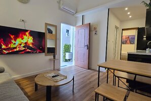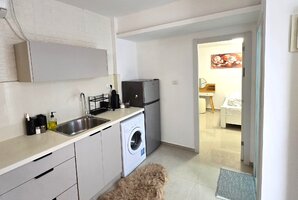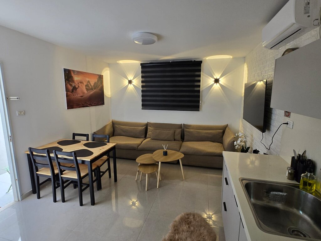 הסוויטה מעוצבת בסגנון מודרני וכוללת כל מה שצריך לחופשה מושלמת: מסך LCD עם Free TV ו-Netflix, ספת סלון נפתחת למיטה, שולחן אוכל וארונות אחסון מרווחים. המטבח מאובזר בקפידה עם מכונת אספרסו, קומקום חשמלי ומקרר.