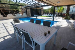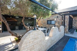 במתחם החיצוני תמצאו מטבח חיצוני מאובזר, טאבון ואזורי ישיבה מרווחים עם ריהוט גן חיצוני ומיטות שיזוף. בנוסף, קיימת עמדת מנגל BBQ מושלמת לערבי ברביקיו עם החברים.