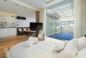 המתחם כולל בריכת שחייה פרטית מגודרת, מחוממת ומקורה, בנוסף לבריכת ילדים, שהופכות את השהות לחוויה בלתי נשכחת. תוכלו גם כן לשקוע בג'קוזי ספא מרגיע וליהנות מרגעי שלווה ורומנטיקה.