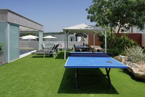 החצר הרחבה מציעה פינג פונג, שולחן סנוקר חיצוני, ומטבח חיצוני מאובזר - כל מה שצריך לחופשה פעילה ומהנה. פינות ישיבה, ערסלים וריהוט גן חיצוני מוסיפים נופך פסטורלי לשהותכם.