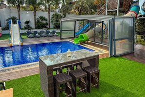 האורחים מוזמנים ליהנות מבריכת שחייה פרטית, מגודרת, מחוממת ומקורה, לצד ג'קוזי ספא מפנק. המתחם החיצוני מציע פינג פונג, מגרש כדורגל, מתקני חצר לילדים ועבודת גריל בעמדת מנגל BBQ. הווילה מאובזרת במסך LCD עם חבילת YES לוויין, שולחן סנוקר מקצועי ופינות ישיבה מרווחות.
