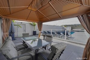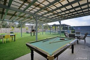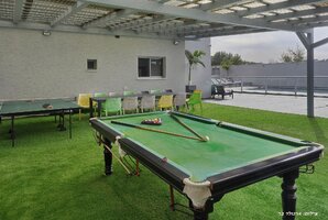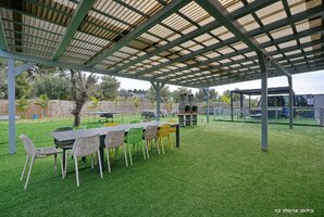בחצר האחוזה תמצאו פינות ישיבה מעוצבות, שולחן סנוקר חיצוני, שולחן פינג פונג ועמדת מנגל BBQ, המאפשרים לכם ליהנות מזמן איכות בחיק הטבע. ריהוט הגן החיצוני מוסיף לאווירה היוקרתית והמפנקת.