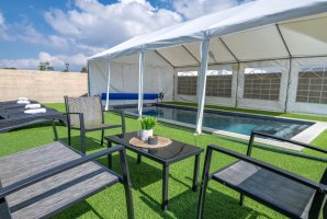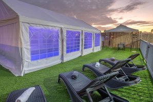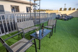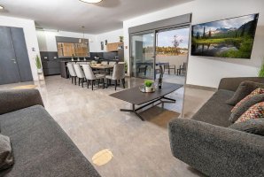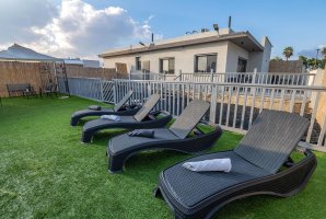 המתחם החיצוני מציע שולחן גינה, פינות ישיבה, מיטות שיזוף ועמדת מנגל BBQ (לא בשבת). בפנים, תמצאו מסך LCD עם HOT טלוויזיה בכבלים ו-Netflix, שולחן אוכל ופינת ישיבה נעימה.