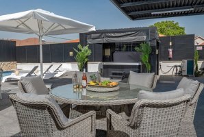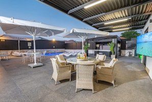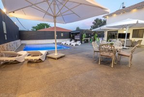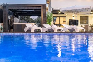 במרכז האחוזה תמצאו בריכת שחייה פרטית ומחוממת, מקורה ומגודרת, לצד ג'קוזי ספא מפנק. המתחם החיצוני מציע פינות ישיבה נעימות, ערסל, שולחן פינג פונג, ושולחן סנוקר חיצוני להנאתכם. המטבח החיצוני מאובזר היטב כולל עמדת מנגל BBQ.