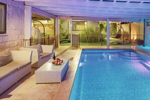 במתחם הוילה תמצאו בריכת שחייה פרטית מגודרת, מקורה ומחוממת בחורף, יחד עם ג'קוזי ספא וסאונה יבשה, המבטיחים רגעים של רוגע ושקט.