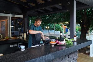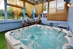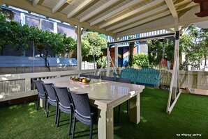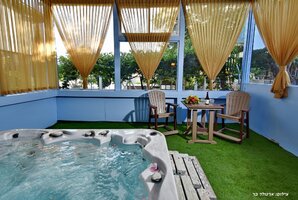 המתחם החיצוני מציע מגוון פעילויות לכל הגילאים: טניס שולחן, כדורגל שולחן, שולחן סנוקר חיצוני ועוד. לאוהבי השמש, המתחם מציע מיטות שיזוף ופינות ישיבה מפנקות. האורחים יכולים ליהנות מעמדת מנגל BBQ מושלמת לערבי קיץ נעימים.