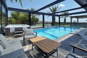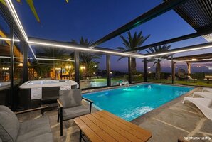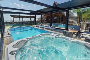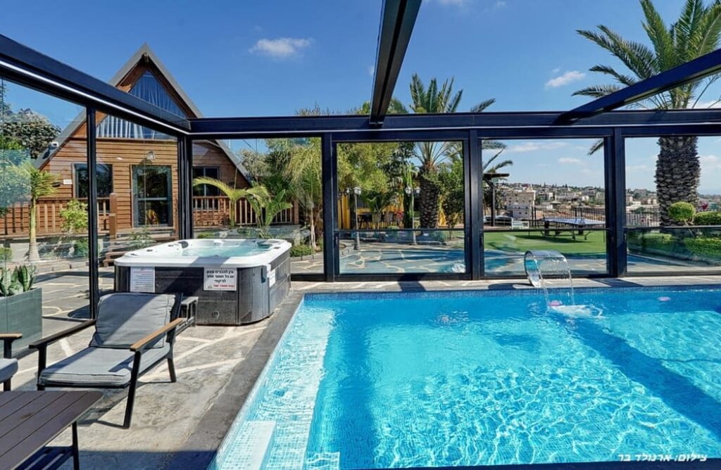 הוילה מציעה בריכת שחייה פרטית מחוממת, מגודרת ומקורה, כך שתוכלו ליהנות משחייה בכל עונות השנה. במתחם החיצוני תמצאו פינות ישיבה נוחות, שולחן סנוקר, טרמפולינה ועמדת מנגל BBQ לחוויית בישול בחוץ.