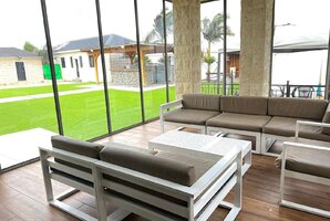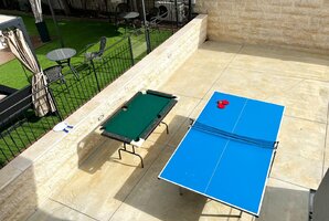 האחוזה מתהדרת בבריכת שחייה פרטית מגודרת, מקורה ומחוממת בחורף, לצד ג'קוזי ספא מפנק - כל אלו מבטיחים רגעים של רוגע ונחת. בחצר תוכלו למצוא מטבח חיצוני מאובזר, פינות ישיבה, עמדת מנגל BBQ, ואפילו מגרש כדורסל. לאוהבי המשחקים, שולחן הפינג פונג גם ממתין לכם במתחם.
