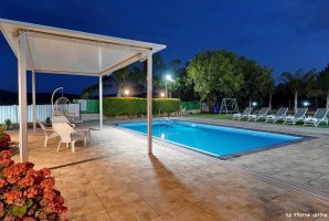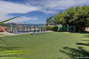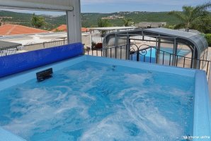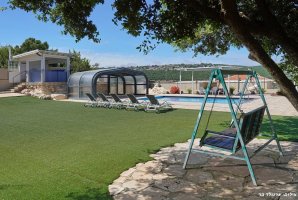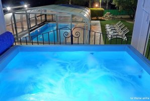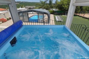 החצר המקסימה של האחוזה מציעה בריכת שחייה פרטית מגודרת, מחוממת ומקורה, לצד ג'קוזי ספא מפנק. לרשות האורחים פינות ישיבה נעימות, ערסלים ומיטות שיזוף, כמו כן גם עמדת מנגל BBQ לשימוש חופשי.