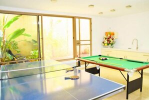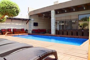 במתחם החיצוני תמצאו מטבח חיצוני מאובזר ושולחן גינה לישיבה נוחה. תוכלו ליהנות ממשחקי פינג פונג, הוקי אוויר וכדורעף, יחד עם עמדת מנגל BBQ ופינות ישיבה מוצלות.
