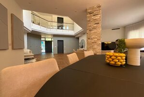 הווילה מעוצבת בטוב טעם, עם דגש על פרטים קטנים שמעניקים תחושת יוקרה ורומנטיקה. בכל חדר תמצאו מסך LCD ופינת ישיבה נוחה, ובסלון שולחן אוכל מרשים שמתאים לארוחות משפחתיות או זוגיות. המטבח מאובזר במכשירים מתקדמים, כולל מכונת אספרסו וקפסולות, תנור ומדיח כלים, כך שתוכלו ליהנות מחוויית בישול מושלמת.
