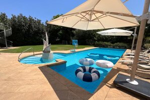 המתחם החיצוני מציע בריכת שחייה פרטית ומגודרת, לצד פינות ישיבה וריהוט גן חיצוני שמאפשרים להירגע תחת השמש. עבור חובבי הספורט, יש מגרשי כדורגל וכדורסל, שולחן פינג פונג ועמדת מנגל BBQ מפנקת. בנוסף, בסביבה הקרובה תיהנו מאטרקציות כמו מגרש גולף ושיט בקייאקים.