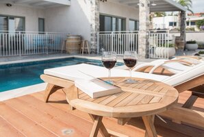 המתחם החיצוני של הוילה מאובזר היטב עם מטבח חיצוני, עמדת מנגל BBQ וריהוט גן יוקרתי הכולל פינות ישיבה ומיטות שיזוף לשעות של רוגע תחת השמש.