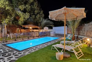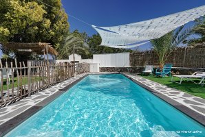 המתחם החיצוני כולל בריכת שחייה פרטית, מגודרת ומחוממת - האידיאלית לרגעי רומנטיקה ופינוק. תוכלו ליהנות גם ממשחק פינג פונג, מטבח חיצוני מאובזר ופינות ישיבה נוחות. האירוח כולל גם שולחן גינה, ריהוט חיצוני, מיטות שיזוף ועמדת מנגל BBQ (מותר, לא בשבת).