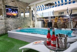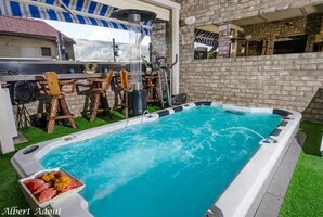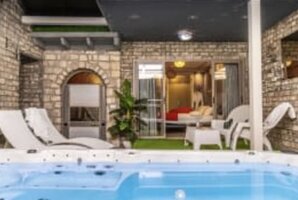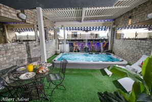 בווילה תמצאו ג'קוזי ספא ובריכת זרמים, המספקים רגעי רוגע ושלווה מושלמים. המתחם החיצוני מעוצב בצורה מושלמת עם שולחנות גינה, מטבח חיצוני מאובזר, פינות ישיבה וריהוט גן חיצוני יוקרתי. מיטות שיזוף ועמדת מנגל BBQ ממתינים לכם להשלמת חוויית הפינוק.