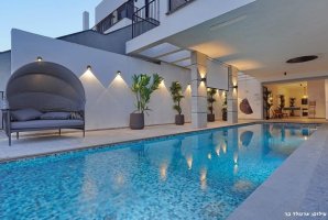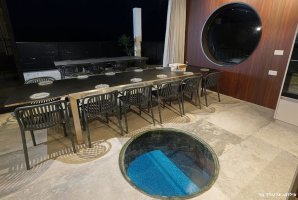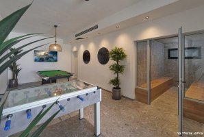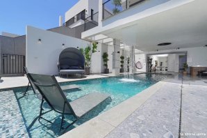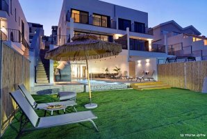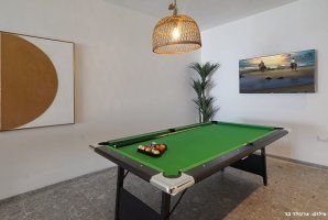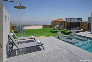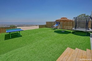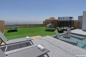 בחצר הווילה תמצאו עמדת מנגל BBQ, מטבח חיצוני מאובזר ופינות ישיבה נוחות. לילדים מחכים מתקני חצר, טרמפולינה ומגרש כדורסל, בעוד שהמבוגרים יוכלו ליהנות ממשחקי פינג פונג וכדורגל שולחן. ריהוט הגן היוקרתי ומיטות השיזוף משלימים את האווירה המפנקת.