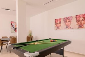 במתחם החיצוני תמצאו שולחן גינה, מיטות שיזוף וריהוט גן חיצוני, כמו גם שולחן סנוקר מקצועי להנאתכם. המקום מתאימים למסיבות, חתונות ואירועים מיוחדים בתיאום מראש, אך אין קבלת מסיבות רועשות.