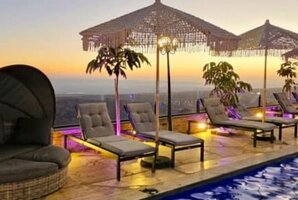 המתחם החיצוני כולל בריכת שחייה פרטית ומחוממת, מגודרת לנוחות ובטיחות. בחצר תוכלו למצוא גם מטבח חיצוני מאובזר, ערסלים, פינות ישיבה נוחות, ושולחנות גינה. למי שמחפש פעילות, הוילה מציעה שולחן פינג פונג ושולחן סנוקר מקצועי.