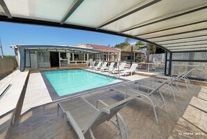 במתחם החיצוני תיהנו מבריכת שחייה פרטית מגודרת, מקורה ומחוממת בחורף, ג'קוזי ספא מפנק, ומתקני חצר לילדים. לחובבי הספורט, יש פינג פונג, כדורגל שולחן ומגרש כדורעף. בנוסף, ישנו מטבח חיצוני מאובזר ועמדת מנגל BBQ לחובבי הבישול.