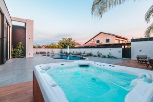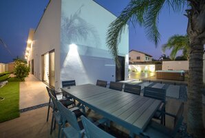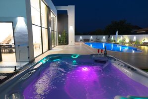 בווילה תמצאו בריכת שחייה פרטית מגודרת ומחוממת, יחד עם ג'קוזי ספא מפנק שישלים את החוויה הרומנטית שלכם. המתחם החיצוני מצויד במטבח חיצוני מאובזר, פינות ישיבה נעימות, ערסל לשעות הרגיעה, מיטות שיזוף, ועמדת מנגל BBQ (לא לשימוש בשבת) להכנת ארוחות תחת כיפת השמיים.