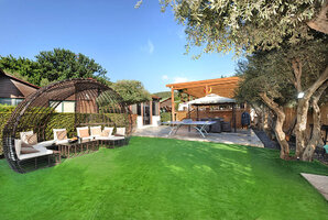 הנאה מהחוץ היא חלק בלתי נפרד מהשהייה באחוזה, עם פינות ישיבה נעימות, ריהוט גן חיצוני, מיטות שיזוף, ועמדת מנגל BBQ (מותרת, לא בשבת). שולחן פינג פונג ומטבח חיצוני מאובזר משלימים את החוויה.