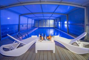 האורחים נהנים מ- 2 בריכות שחייה. כל אחת מגודרת, מקורה ומחוממת, סאונה יבשה ורטובה, וכן ג'קוזי ספא מפנק.