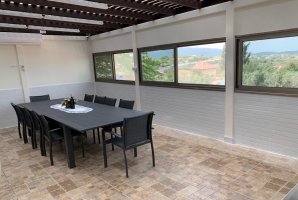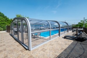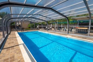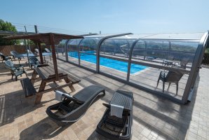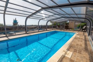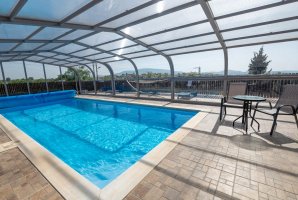 בריכת השחייה הפרטית, המגודרת והמקורה מציעה לכם פינה של שלווה ורוגע, במקום בו תוכלו להירגע וליהנות מהשמש על מיטות השיזוף.