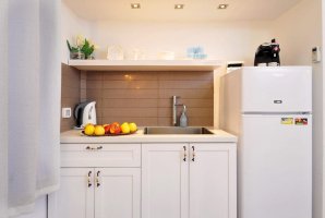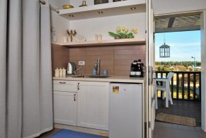 המטבח המאובזר כולל כיריים, מקרר, מכונת אספרסו/קפה עם קפסולות, קומקום חשמלי ומיקרוגל - כל מה שצריך להכנת ארוחות ביתיות מפנקות.