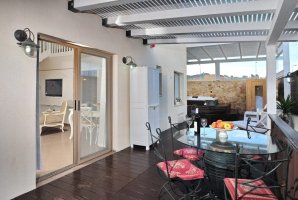 בשטח החיצוני של האחוזה תמצאו ריהוט גן חיצוני, פינות ישיבה נוחות, שולחן גינה ועמדת מנגל BBQ להכנת ארוחות על האש תחת כיפת השמיים.