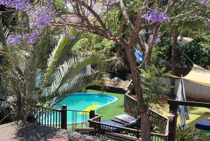 במתחם החיצוני של הצימר תמצאו בריכת שחייה פרטית המוקפת במתקני חצר לילדים, פינות ישיבה מקסימות וערסל נעים. המטבח החיצוני המאובזר, פינות הגן השונות ושולחן הגינה מספקים את האווירה המושלמת לכל אירוע או מסיבה.