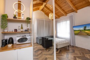 בכל סוויטה תמצאו מסך LCD עם חבילת HOT טלוויזיה בכבלים, פינת ישיבה ושולחן אוכל. המטבח מאובזר עם מכונת אספרסו, מקרר, מכונת קרח וקומקום חשמלי. בחדר הרחצה מחכים לכם אמבט ספא מפנק ומגבות רחצה רכות.