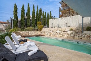 במתחם ניתן ליהנות מבריכת שחייה פרטית, מגודרת ומחוממת, המבטיחה חווית רחצה מושלמת בכל עונות השנה. בנוסף, תמצאו במתחם מטבח חיצוני מאובזר, עמדת מנגל BBQ ופינות ישיבה נוחות, כולל ערסל ומיטות שיזוף לרגיעה מושלמת.