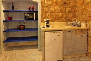 איזה אבזור קיים במטבח של בית האומנים?האבזור הקיים במטבח של בית האומנים: קומקום חשמלי, מכונת אספרסו / קפה, כיריים, טוסטר, מיקרוגל, מקרר קטן.
