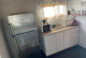 איזה אבזור קיים במטבח של בקתות דרך האושר המקורי?האבזור הקיים במטבח של בקתות דרך האושר המקורי: קומקום חשמלי, כיריים, מיקרוגל, מקרר.