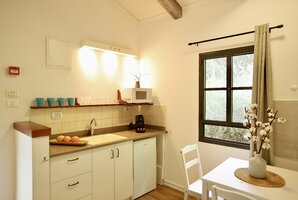 איזה אבזור קיים במטבח של בקתות נומה?האבזור הקיים במטבח של בקתות נומה: קומקום חשמלי, מכונת אספרסו / קפה, כיריים, מיקרוגל, מקרר.