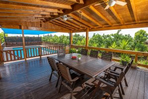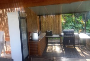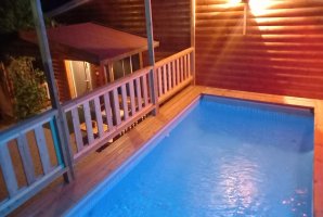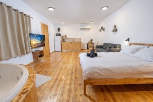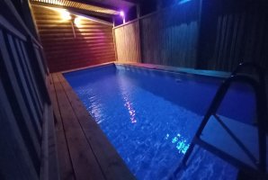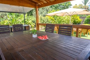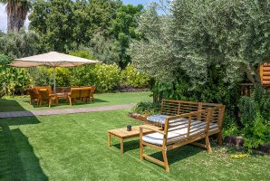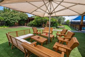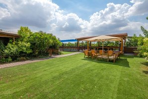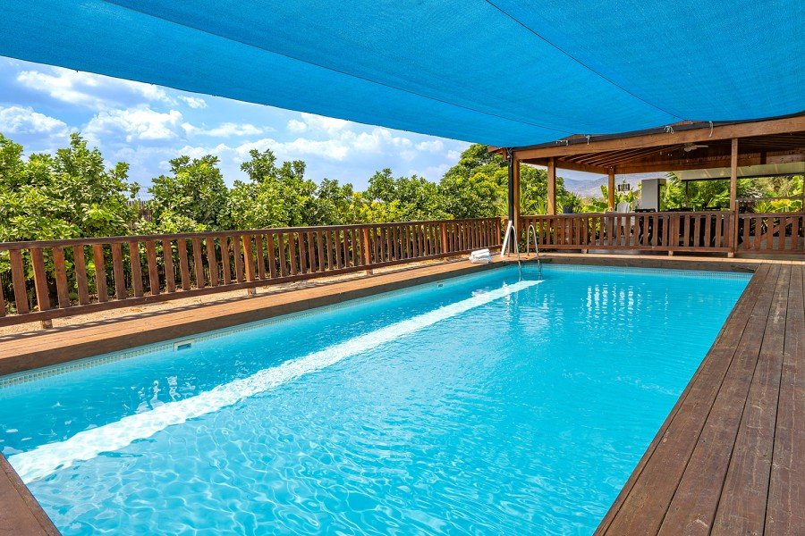 המתחם מציע בריכת שחייה פרטית ומגודרת לצד בריכת זרמים מרעננת להנאה מושלמת. פינות ישיבה ומיטות שיזוף מפוזרות ברחבי החצר, ומטבח חיצוני מאובזר ועגלת מנגל BBQ משלימים את החוויה.