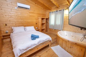 כל בקתה מצוידת במסך LCD, טלוויזיה בלוויין (YES), שולחן אוכל ופינת ישיבה נוחה. המטבחים המאובזרים כוללים מכונת אספרסו עם קפסולות, מקרר ומקפיא נפרד, וכיריים. בחדרי הרחצה תמצאו אמבט ספא, מגבות רחצה רכות ושמפו ומרכך.