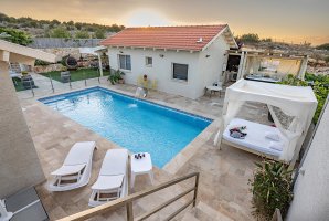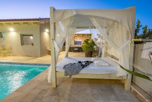 המתחם כולל שתי יחידות אירוח מעוצבות בקפידה, כל אחת מהן מציעה ספת סלון נפתחת למיטה ופינת ישיבה מרווחת. בחצר הפרטית תוכלו ליהנות מבריכת שחייה פרטית ומגודרת, מיטות שיזוף נוחות, ערסל ופינות ישיבה שלוות. למי שאוהב לבשל, ישנו מטבח חיצוני מאובזר עם עמדת מנגל BBQ.