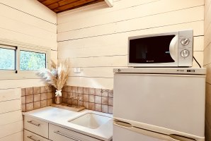איזה אבזור קיים במטבח של איתן בקתות עץ?האבזור הקיים במטבח של איתן בקתות עץ: קומקום חשמלי, כיריים, מיקרוגל, מקרר, מקפיא נפרד.