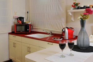 איזה אבזור קיים במטבח של לה פאצ'ה?האבזור הקיים במטבח של לה פאצ'ה: קומקום חשמלי, מכונת אספרסו / קפה, מיקרוגל, מקרר קטן.