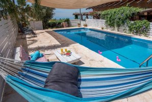 במתחם החיצוני תמצאו בריכת שחייה פרטית ומגודרת, ג'קוזי ספא מרגיע, וכן פינות ישיבה, ערסלים ומיטות שיזוף. הילדים ייהנו ממתקני חצר, בעוד שאתם יכולים להתפנק בקפה איכותי ממכונת האספרסו שבמטבח המאובזר. ניתן להזמין ארוחות שף וארוחות כשרות (בתיאום מראש).